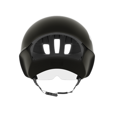 The Procen utilises an innovative 2-position lens system to overcome a problem common with all visor helmets: lens fogging. In the 'start position', the lens sits around 10mm away from the helmet to ensure air can move naturally, ideal to prevent fogging while in the time trial start gate. It's also possible to ride with the lens in this position, with a clear line of sight in all directions. The visor lens is fully detachable, and will also break away from the helmet in a crash thanks to an innovative temple design.